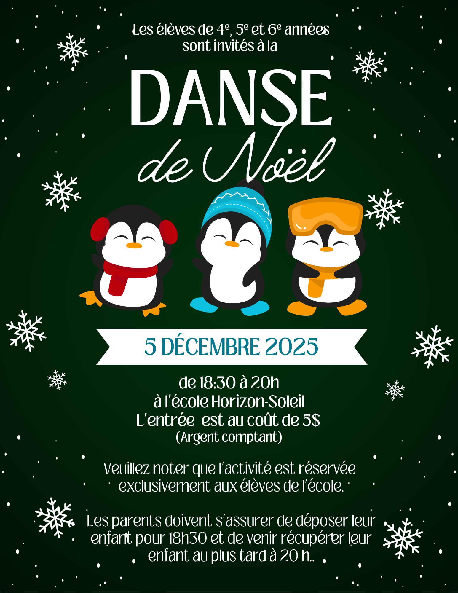 Danse de Noël (4e, 5e et 6e année) – 5 décembre 2025